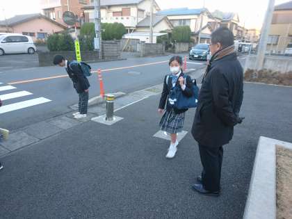今朝の登校の様子です。今週も元気に生活していきましょう。