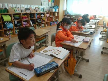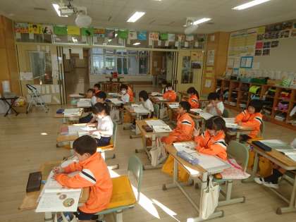 1年生は国語で「まめ」という教材を学習しています。話の順序を考え、読み取りを行いました。