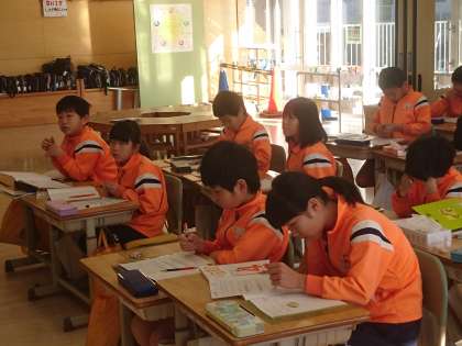 4年生は算数で「分数の大きさ」について学習しています。真分数、帯分数、仮分数を学習し、3つの分数を比較しながら、それらの大小について話し合いました。