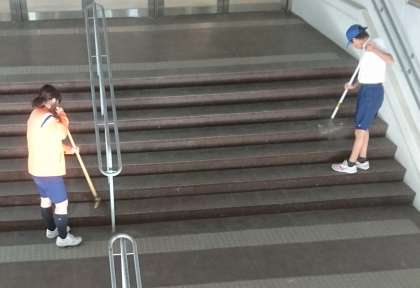 中CD組日常生活指導の様子です。朝トレの後に1階ピロティと階段の掃き掃除を行いました。ありがとうございました。