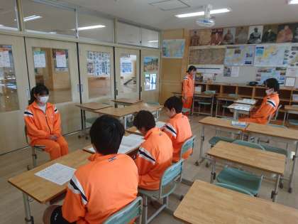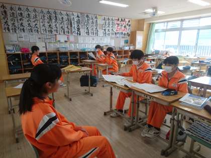 9年生は学級活動の時間において、生徒同士で面接練習を行っていました。