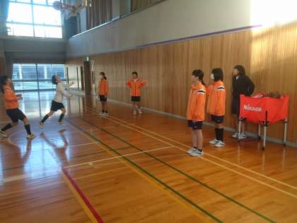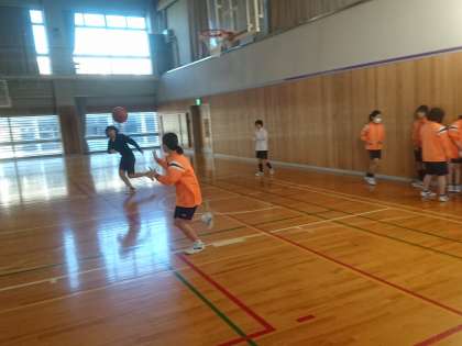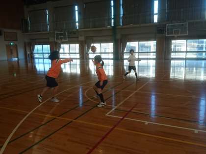 バスケットボール部の様子です。ドリブル、パス、シュートと、一連の動きを徹底的に行っています。春を目指して頑張っています。