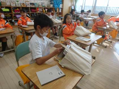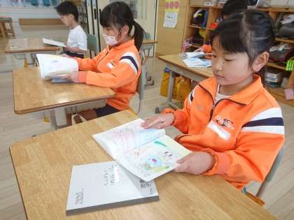 1年生は言語科「読解の時間」において、読書ノートを使って、これまで読書したものを振り返る活動を行っていました。子どもたちは1年間でたくさんの良書に出会いました。