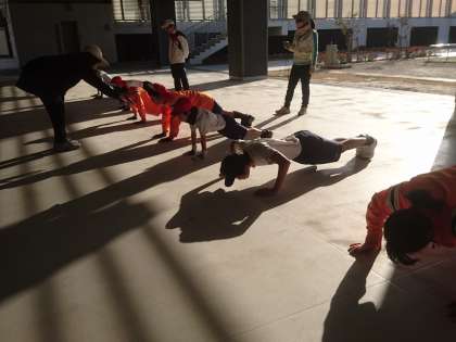 小中CD組の日常生活指導の様子です。みんなで朝トレーニングを頑張っています。