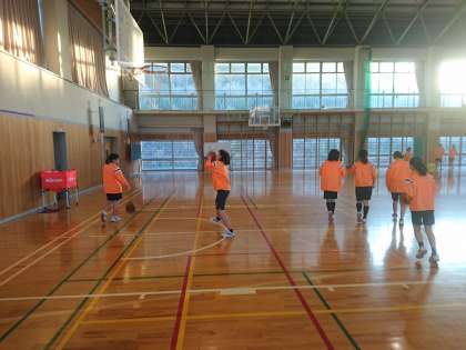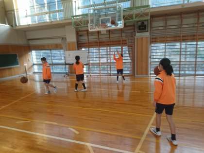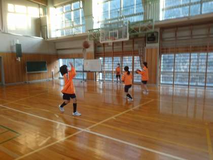 バスケットボール部の朝練習の様子です。声を掛け合って練習をしていました。