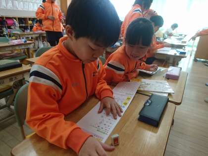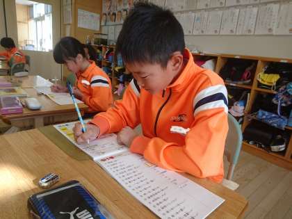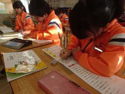 4年生は国語で既習漢字の定着を図るために漢字ドリルへの書き込みを行っていました。