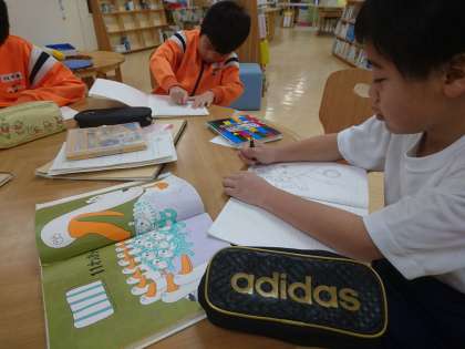 小C組は言語科「英語の時間」において、「絵本を作ろう」という活動を行っています。