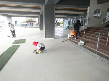 小中C組日常生活指導の様子です。朝トレの後に1階ピロティと階段の掃き掃除を行いました。ありがとうございました。