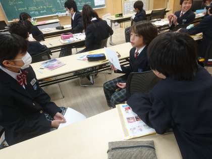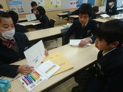 6年生は言語科「英語の時間」において、「My best memory」という教材で、プレゼン用紙を使いながら英語で一番の思い出を発表することができました。