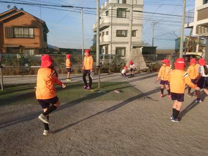 初志部なわとび運動の様子です。みんなでなわとび名人を目指して努力しています。