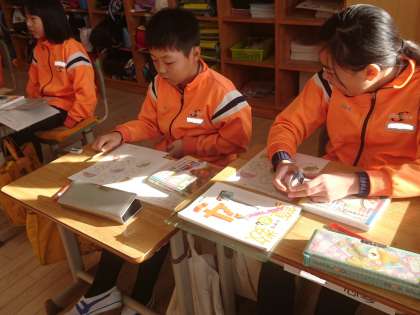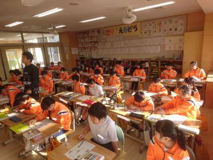 4年生は算数で「分数」について学習しています。ケーキを色々な分け方で切ったとき、等しく分けられるのはどれなのかを考え、意見交流しました。