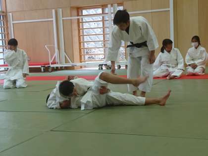 7年生は体育で柔道を行っていました。袈裟固(けさがため)や横四方固(よこしほうがため)等の押さえ込み技を学習しました。みんな格好良く技を決めていました。
