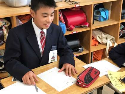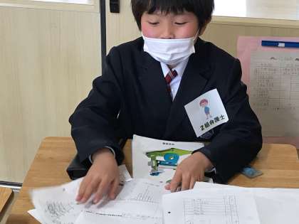 6年生の算数は、2クラスのソフトボール投げの結果を題材に、どちらの学級が優れているかを説明しあう授業を行いました。