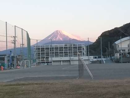 今朝の様子です。秀峰富士が朝の光に照らされ輝いています。