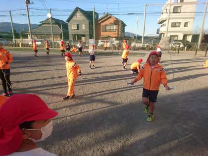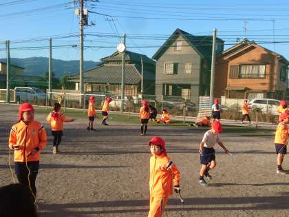 初志部なわとび運動の様子です。子どもたちは目標の級の達成に向けて日々練習に励んでいます。