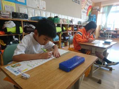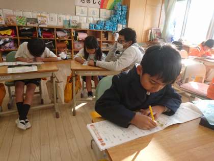 1年生は国語で新出漢字の練習や1年間の復習を行っていました。この1年間で多くの漢字を書けるようになりました。