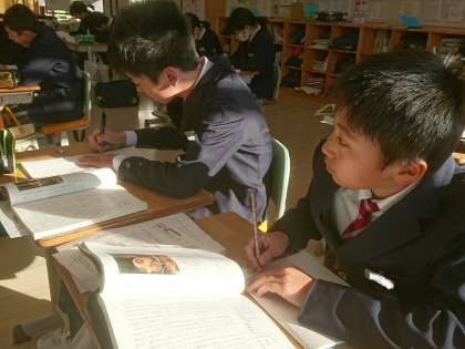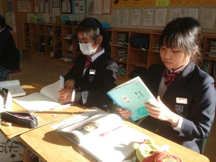 7年生は国語で「ものづくりに生きる」という教材を学習しています。「ものづくり」という言葉について確認した後、本文を読みました。