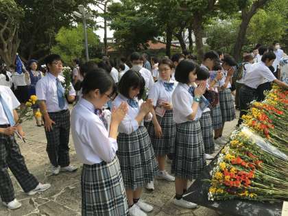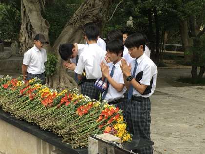 ひめゆりの塔で、戦争で亡くなった方のご冥福と永遠の平和願って献花をしました。