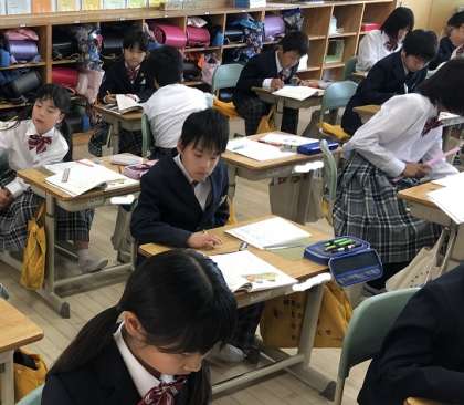 5Aの国語の授業では、“みちくさ”という題材で、みんなで考えたいこと、疑問に思ったことを出し合い、学習課題を決めていました。