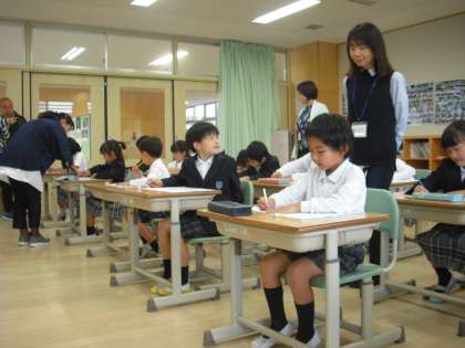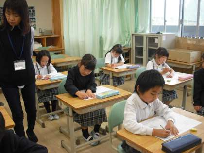 鉛筆の持ち方を確かめながら、まずはまっずぐ線を書く練習をします。