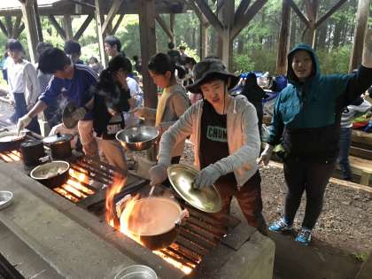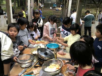 7年生がリーダーで縦割り班で協力してしおりを見ながら作っています。