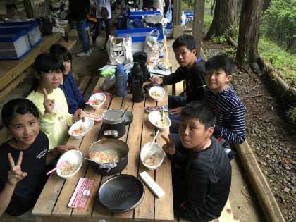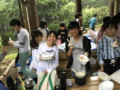 クリームシチューも美味しくできました。いただきます。手際の良い班が多いです。