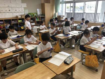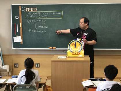 3Aの算数の授業では、さかのぼった時間を求める活動を行いました。時計の模型を使って考える子ども、数直線を使って考える子ども、それぞれに工夫して活動しています。