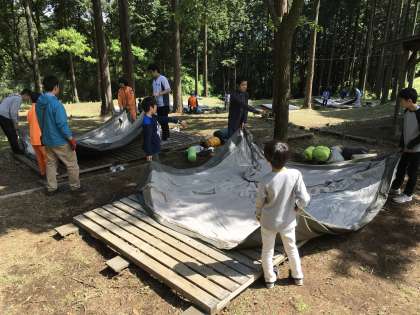 テント設営開始