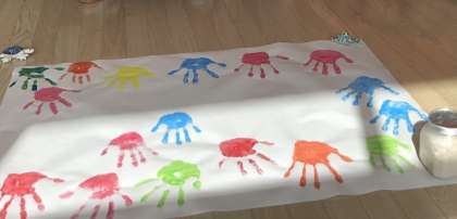 8Aが、学級目標を制作しています。一人ひとりが絵の具で手形を押し、みんなの力を合わせて学級を作っていこうという思いが込められています。素晴らしいものができあがることを楽しみにしています。