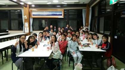 5年生は、初めての立志部自然教室ですが、しおりをよく読んで意欲的に活動ができています。たいへん立派です。写真は入浴後に食堂で夜食のパンとジュースを配布した時の写真です。もう一日頑張りましょう。