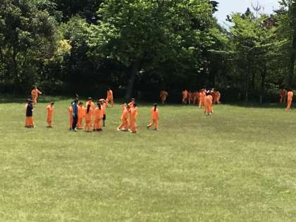 芝生広場で楽しく走り回っています。最後までみんな元気です。