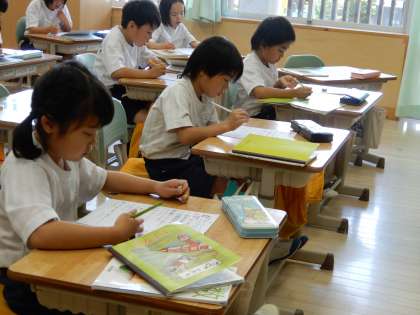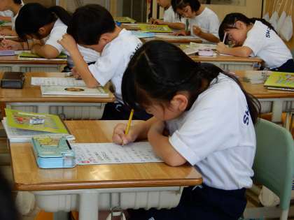 1000までの数の大小比較の学習です。数の意味(読み方、表し方、大小、順序)理解を学習していきます。各自問題練習です。問題を解いたら先生が確認しています。