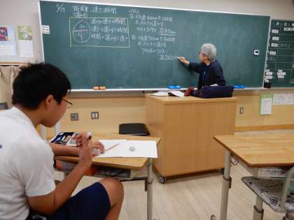 中CD組さんの数学は、学年に分かれて学習しています。C組では速さの問題を学習しています。