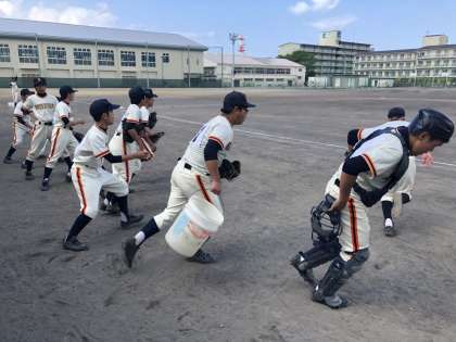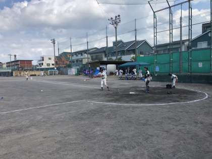 今日、野球部は金岡中と練習試合と合同練習を行います。中体連に向けて気合が入っています。