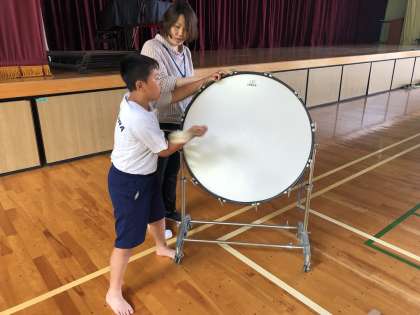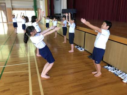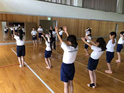 6月27日(木)の部活動激励会に向けて、応援団が練習に励んでいます。鏡を見ながら腕の振りを確認したり、全体で太鼓のリズムに合わせたり、頑張っています。