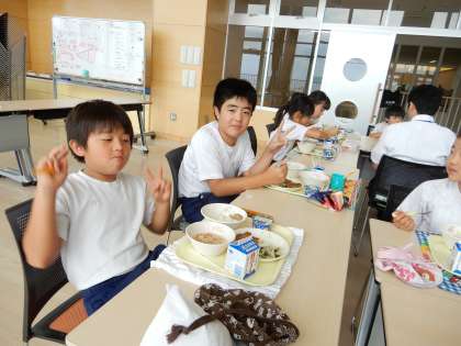 座席もくじ引きで決めています。給食委員会が楽しい企画を考えてくれました。星形ハンバーグたいへん美味しかったですね。
