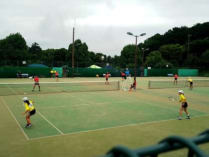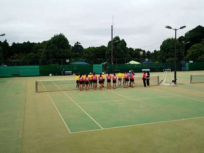 ソフトテニス部 団体戦決勝 対大岡中 1対1です。頑張れ!静浦!