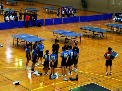 卓球部予選リーグは、第1試合、金岡中。第2試合原中です。9時30分一斉スタート。第1試合のみ5人全員が行い、第2試合以降は、3人先取となります。7年生4人も全員出場です。