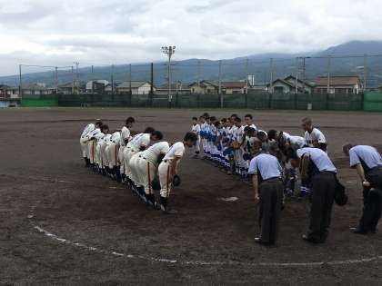 野球部 対原二中 試合が終了 1対11 点差は開きましたが、最後まで諦めないで仲間と声を出し合ってプレーができました。この悔しさは、後輩たちがきっと頑張ってくれます。