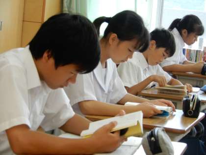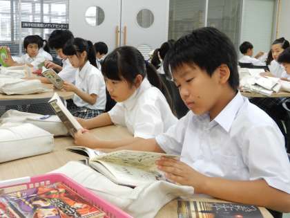 9学年の子供たちが、自分たちの発達段階に応じて読書を楽しんでいます。
