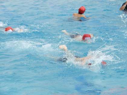 水泳の授業です。25Mをクロールや平泳ぎで泳いでいます。上手に泳げる子が多いです。さすが静浦の子供たちです。
