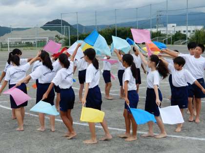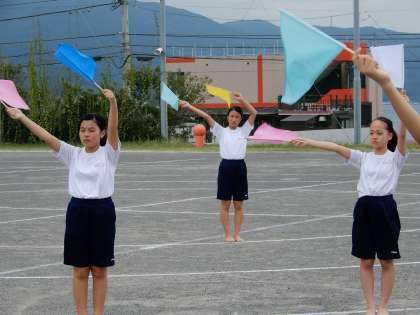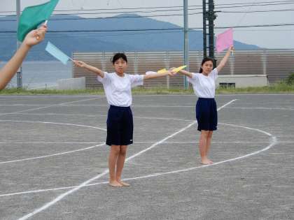 7A体育の授業です。立志部組み体操の練習です。7年生さすが上手です。