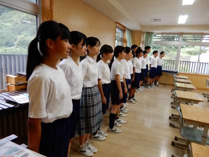 担任の先生も楽譜を片手に麻里子先生の指導をメモしています。気合いが違います。担任の先生も含めて8Aの心は一つですね。