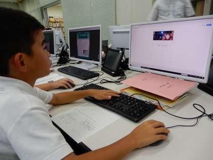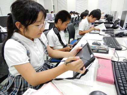 消防についての学習です。火事から人々を守ってくれている消防士の仕事について詳しく調べています。4年生ですが、タブレットとパソコンを上手に使いこなしています。