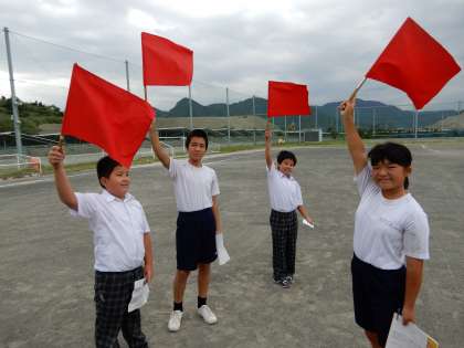 観察係、選手係、用具係も活動開始です。みんな自分の仕事に責任持って一生懸命確認しています。