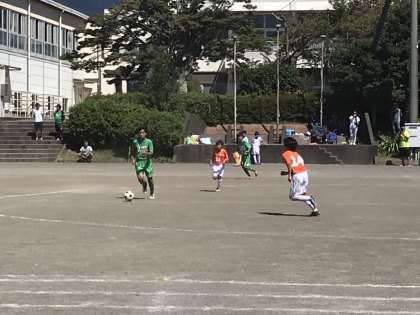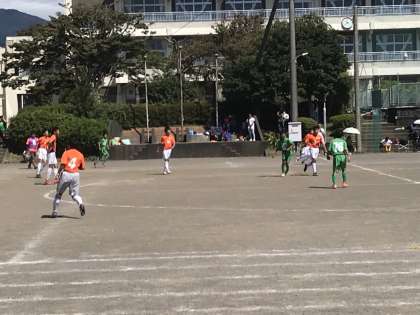 サッカー部は愛鷹中学校グラウンドで試合を行なっています。第一試合は三島中郷西中との練習試合で、暑さの厳しい中で戦い、1ー2の惜敗でした。第二試合はこの後、第五中学校とのオープンリーグ戦です。