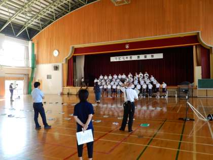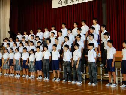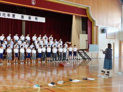 大志部合唱は「時を超えて」「静浦小中一貫学校校歌」の二曲を合唱します。各パートの良いハーモニーが聞こえてきます。