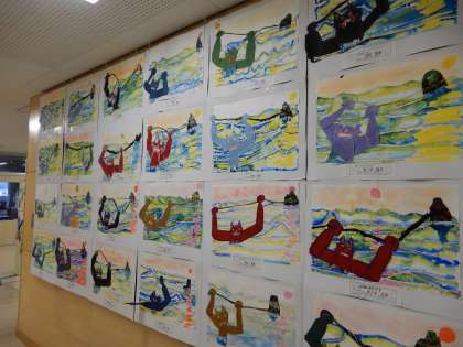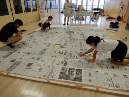 黒潮祭展示の部は、プログラムの制作、子供たちの作品展示、モザイクアートも完成しカバーを掛けています。いよいよです。体育の部、展示の部、ステージの部の各係りの皆さんありがとうございます。