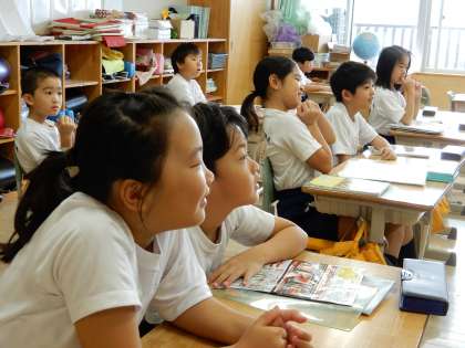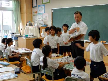 「身近な地域」の学習です。実際に見学に行ったり、調べたりした沼津市についてガイドブックを作成しました。お友達が作ったガイドブックを順に発表しています。