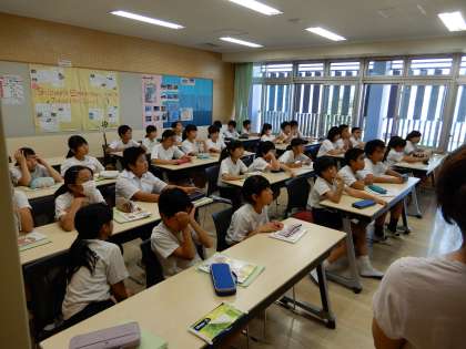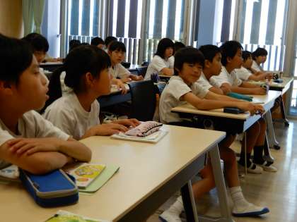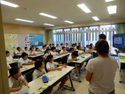 canの使い方を学習しています。ALTの先生と匡崇先生との対話から、canを使った文の答え方を学んでいます。